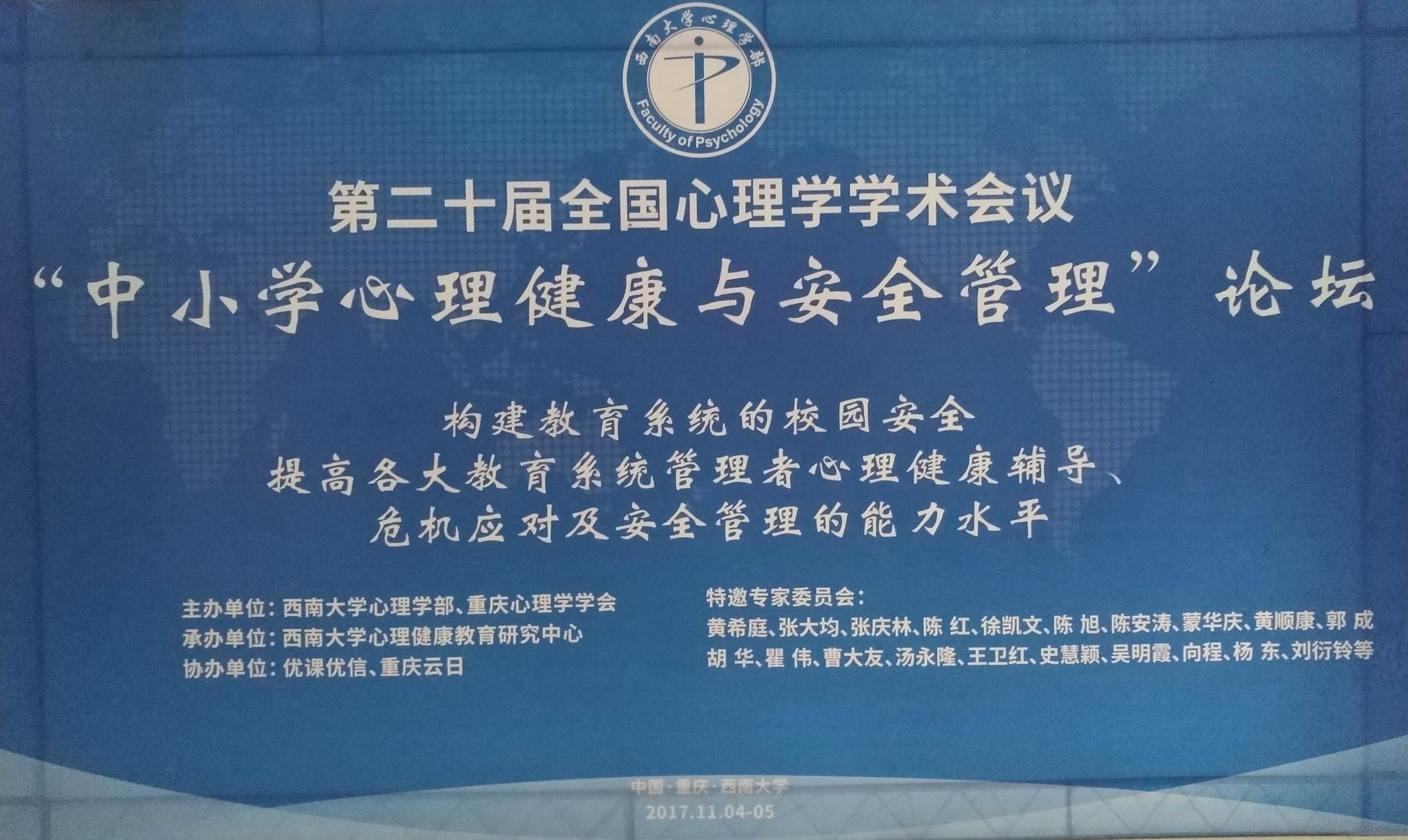 第二十届全国心理学学术会议“中小学心理健康与安全管理”论坛